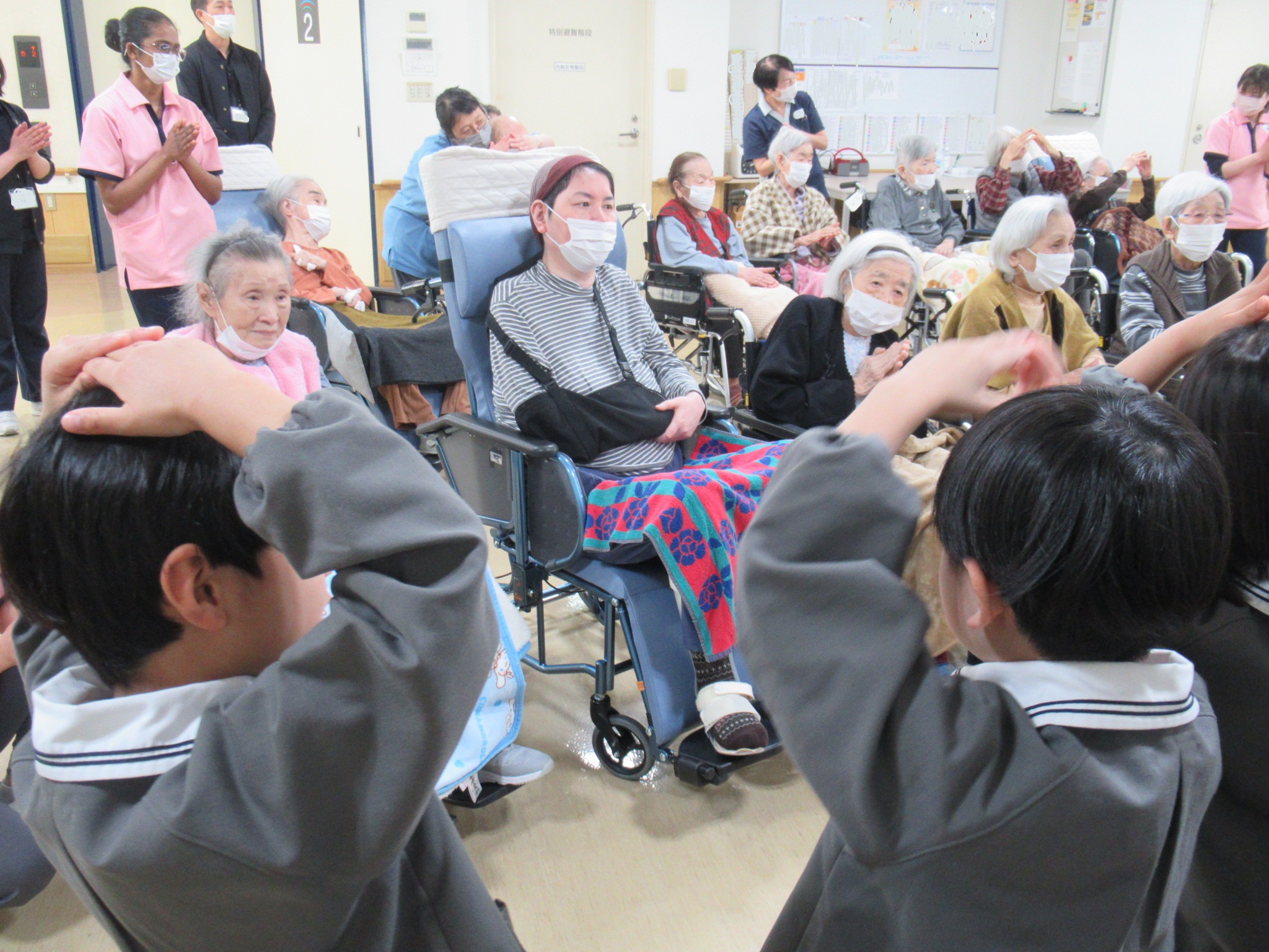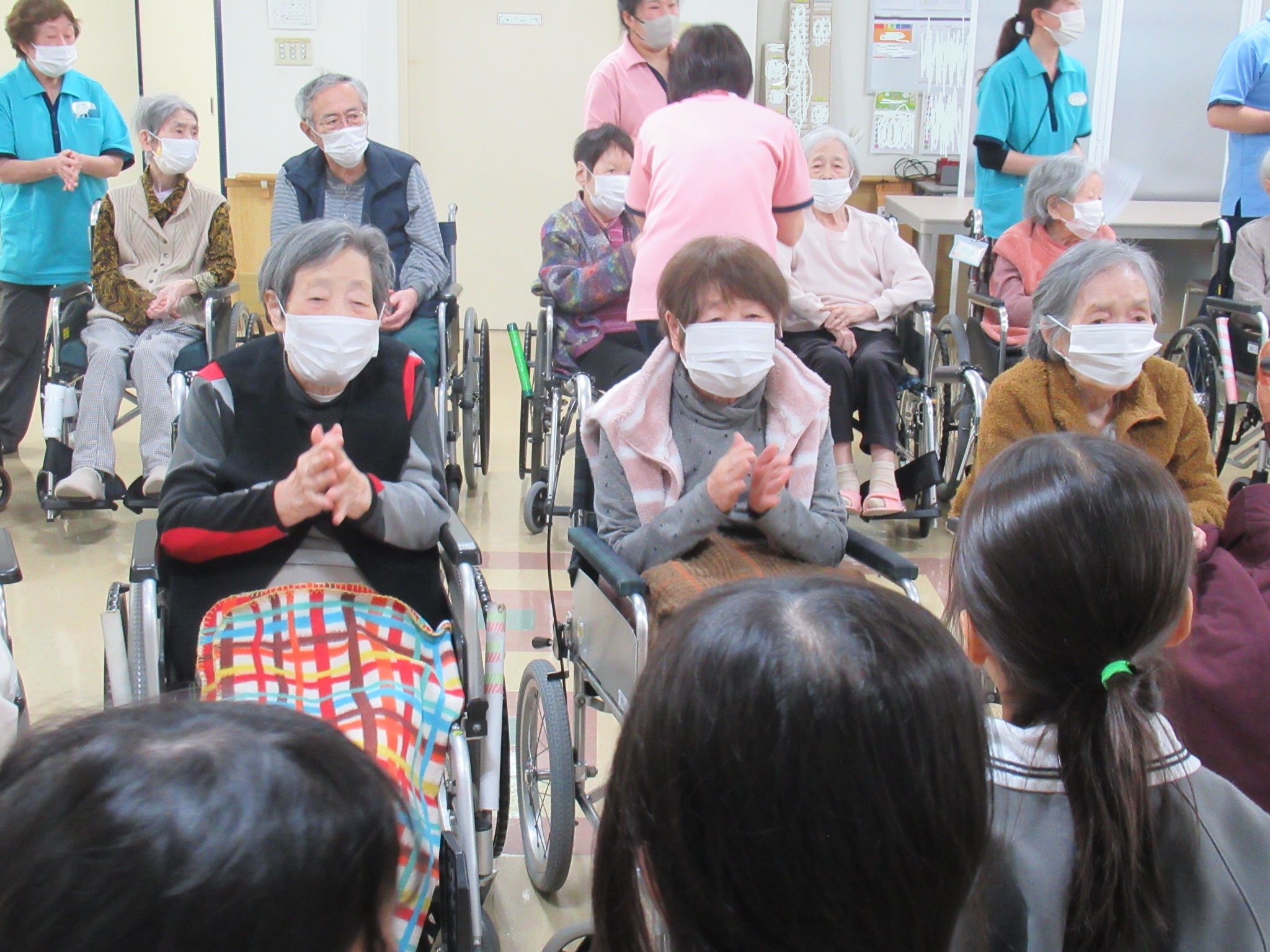 元気な歌声や園児たちの様々な表情に利用者さんたちは何度も「可愛いね~」と喜ばれていました。